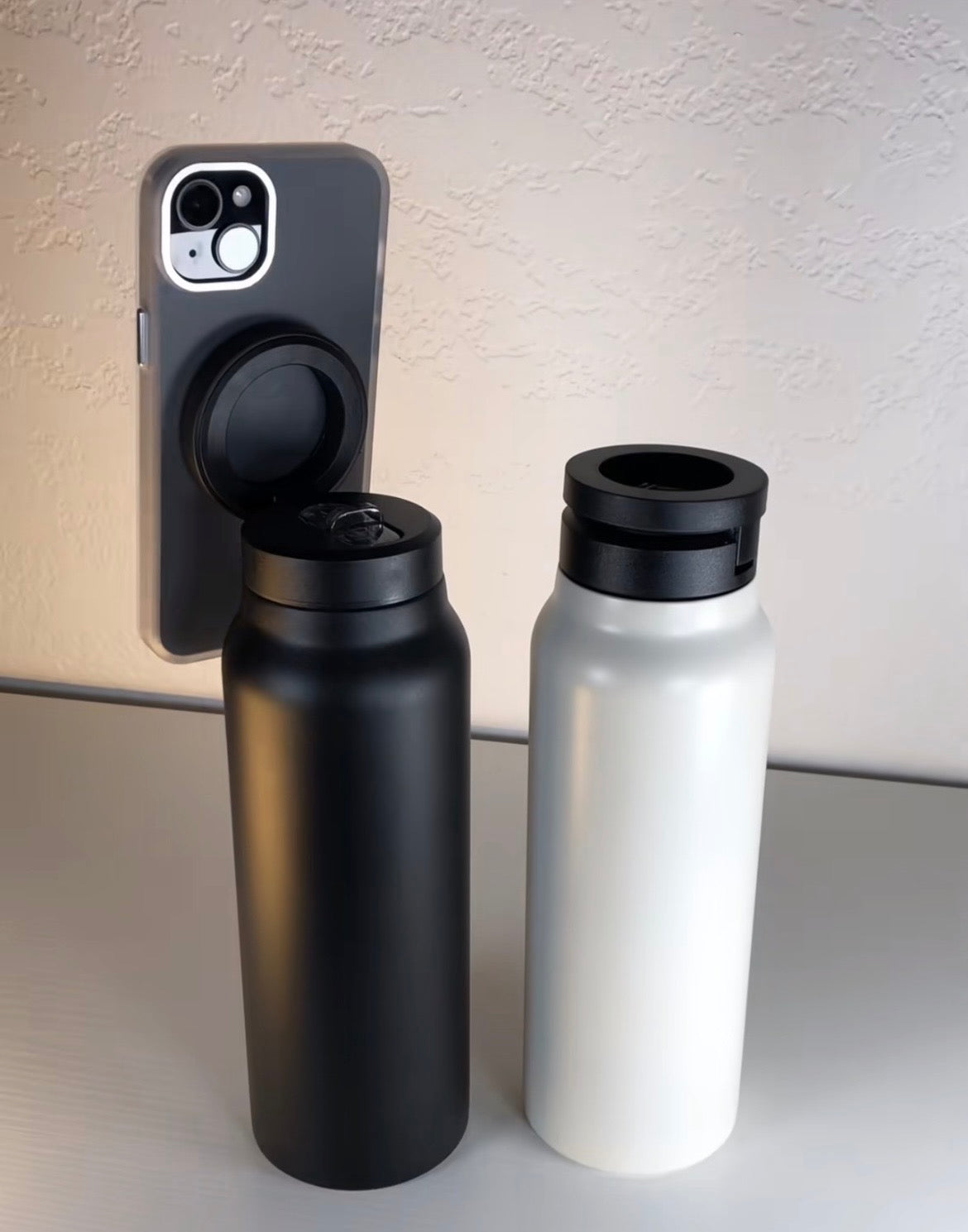Keep drinks hot for 12 hours or cold for 24 with this 800ML stainless steel bottle. Built-in magnetic phone tripod lets you go hands-free anywhere. Durable, leakproof, and perfect for travel, workouts, or daily use.